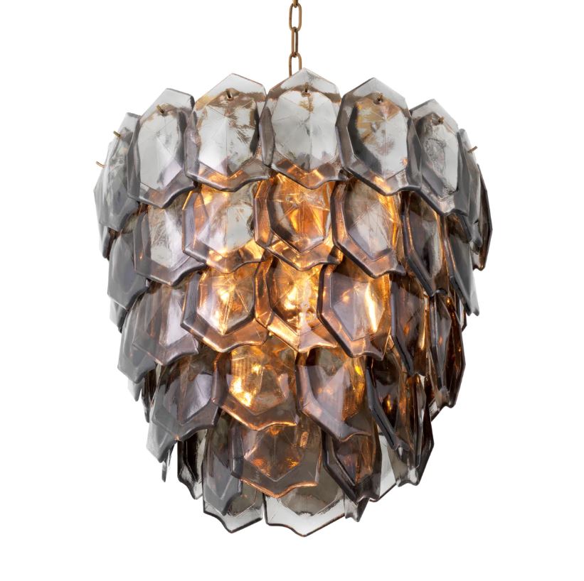 The fixture, which has a vintage brass finish, is adorned with over 60 pieces of handmade glass. Skilled artisans meticulously craft each piece. The perfect centrepiece for any lifestyle room, this stylish and timeless design will be a talking point in your home.