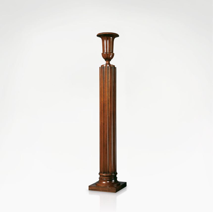 This pedestal is handcrafted from solid mahogany and starts with a square base that leads into a tall slender column. The plinth of the pedestal is formed from a flower like upper section that rests atop the column.